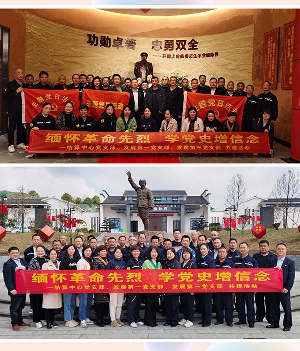 4月9日,結算中心黨支部、發(fā)展公司第一、第三黨支部聯(lián)合赴株洲市淥口博物館開展了"緬懷先烈學黨史、增信念,立足本職勇?lián)?主題黨日共建活動。博物館前,全體黨員嚴肅莊重的瞻仰了楊得志將軍銅像,向革命先烈表達緬懷之情。隨后,黨員們重溫了入黨誓詞,并參觀了楊得志將軍生平業(yè)績陳列展廳,聆聽了先烈的感人事跡和革命斗爭經歷,在一件件革命歷史文物前駐足緬懷。大家紛紛表示要以黨史學習教育為契機,從黨的奮斗歷程中、革命先烈的英雄事跡中汲取精神力量,向先進典型看齊,向身邊榜樣學習,為公司"六個上臺階"及"十四五"規(guī)劃目標的實現(xiàn)積極貢獻!